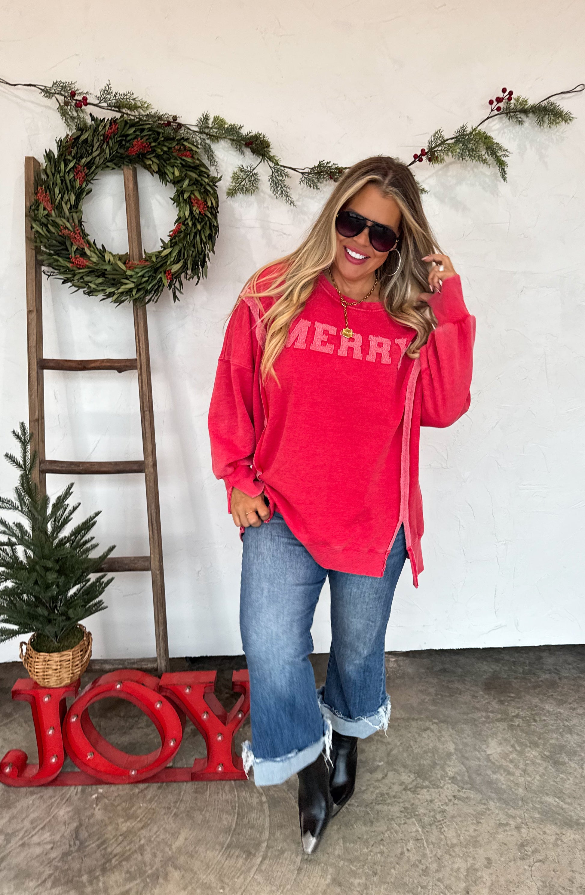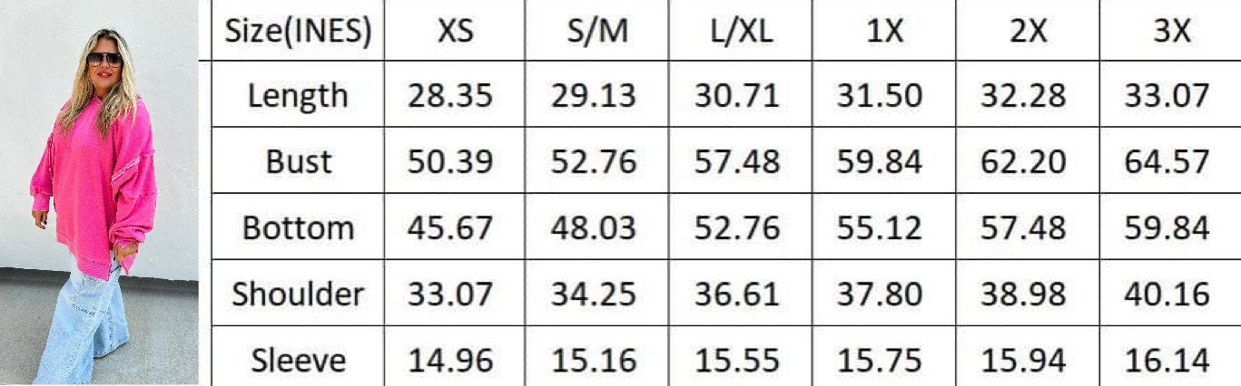 This forever timeless pullover is a slouchy, relaxed fit with exposed seaming, cute split cuff hem and ribbed trim detail! Has super soft "sweatshirt" feel on the inside!