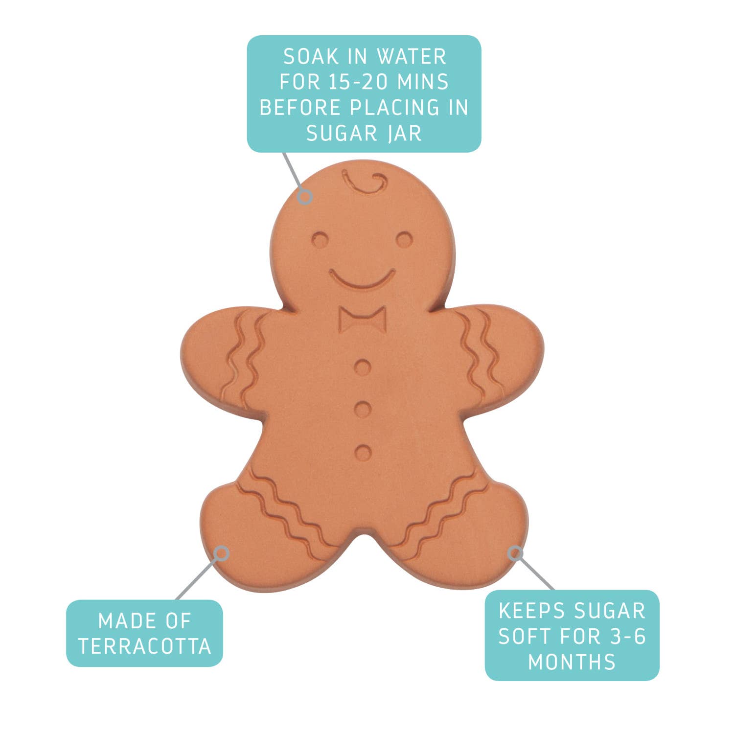 Find a friendly creature nestled in your jar of brown sugar. High-fired and food-safe terracotta ensures sugar stays soft and maintains moisture for 3-6 months. Soak the saver for 15-20 minutes, pat dry, and then place in the jar.